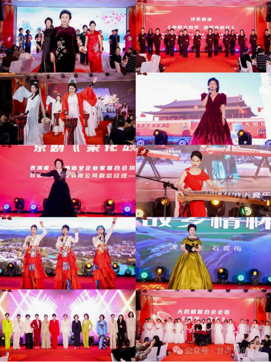 由会员自编自演的文艺节目精彩纷呈:激昂的非洲鼓《天地龙鳞》奏响奋进乐章,深情的诗歌朗诵《巾帼心向党逐梦新时代》抒发家国情怀,优雅的旗袍走秀尽显东方韵味,自信的时装展示彰显时代风采,婉转的京剧演唱《梨花颂》、悠扬的古筝独奏《女儿情》、动人的歌伴舞《洗衣歌》、深情的独唱《故乡情怀》《牡丹之歌》《亲吻祖国》等节目轮番上演,充分展现了女企业家们刚柔并济、才华横溢的别样风采。最后,在郝一颖会长的带领下,全场高唱会歌《情暖一片天》,将晚会推向高潮。